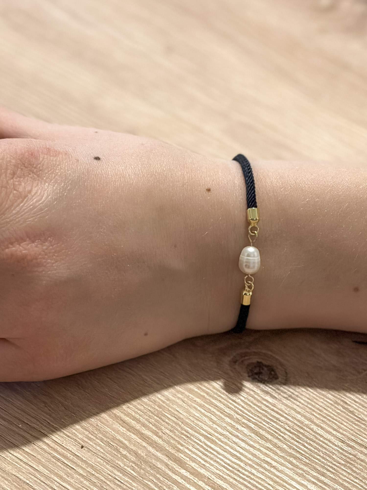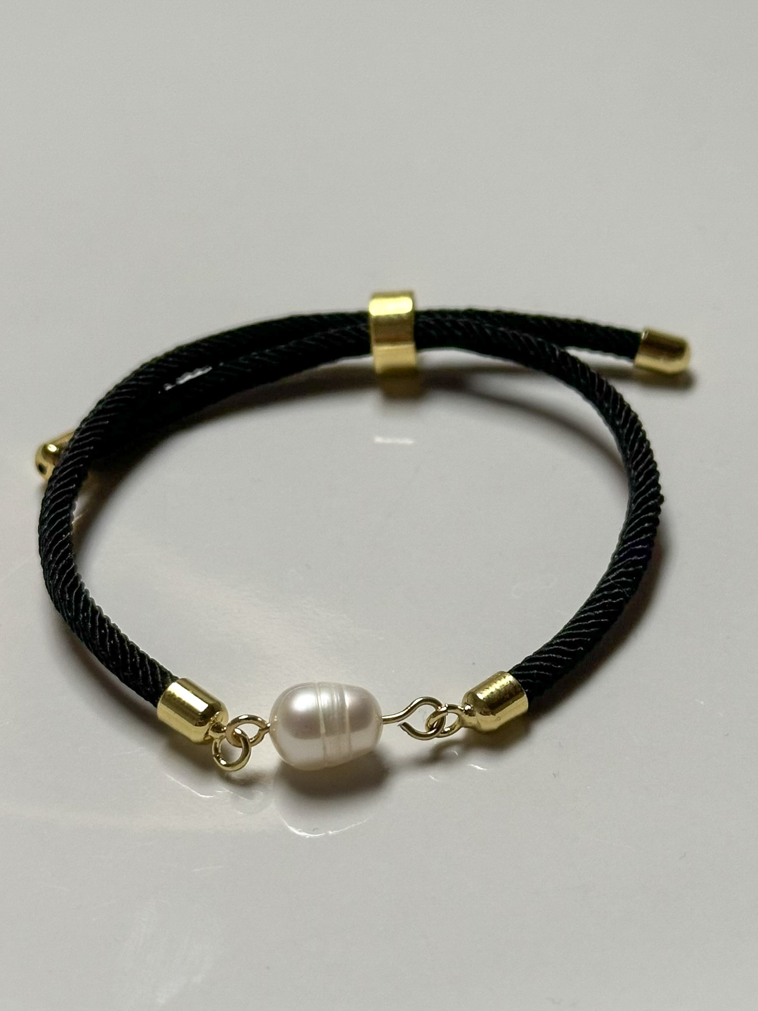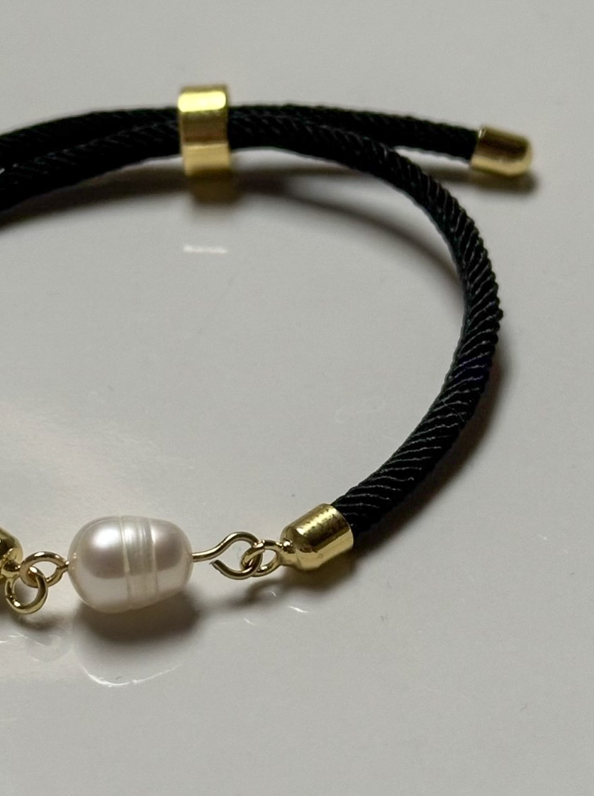 Perlu doplňují pozlacené komponenty, které náramku dodávají jemný luxusní nádech. Náramek je zhotoven z textilního lanka s posuvným zapínáním, díky kterému se snadno přizpůsobí téměř každému zápěstí a pohodlně se nosí po celý den.